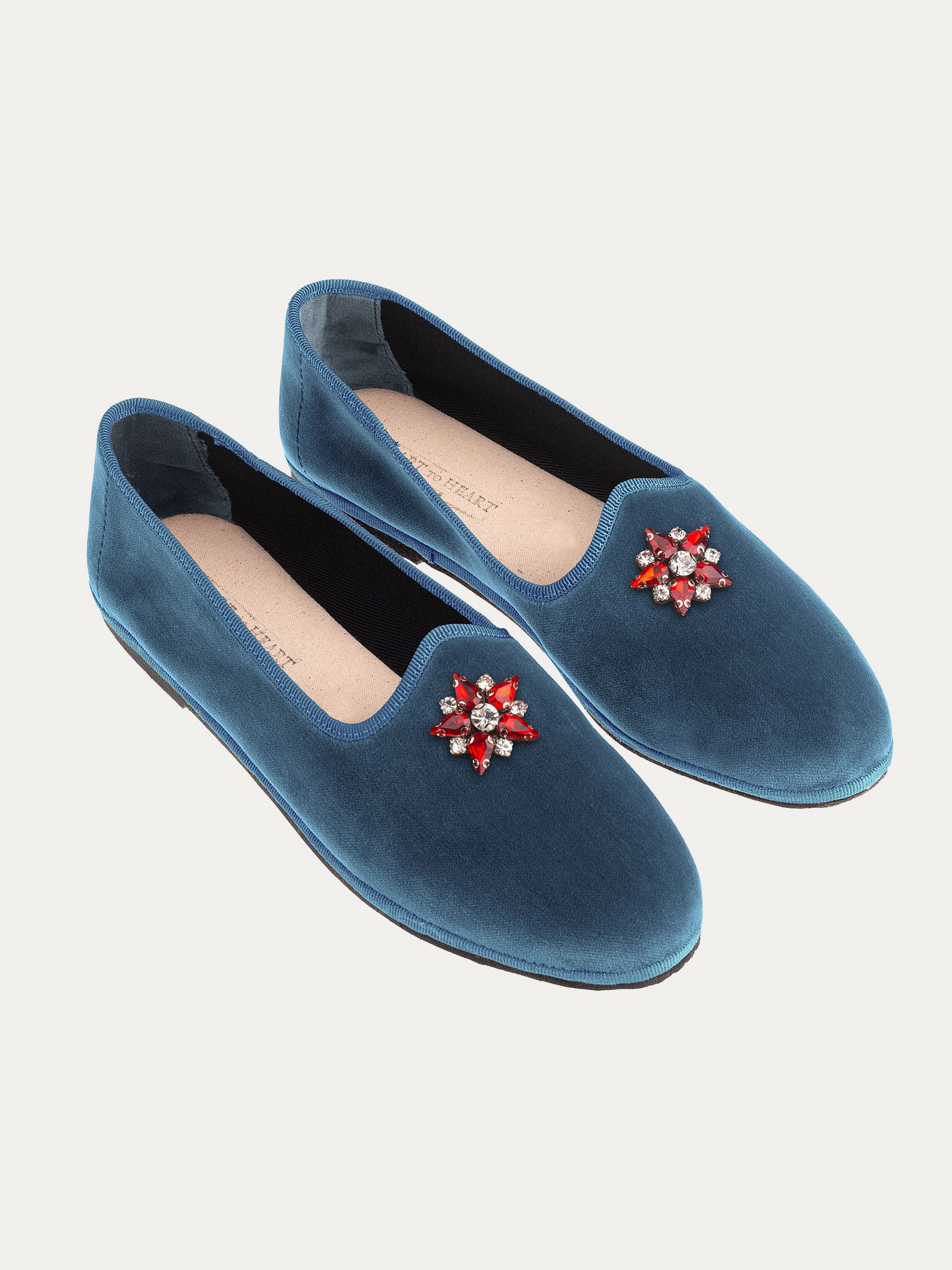 Elegant and comfortable, these cotton velvet slippers are handcrafted with care.