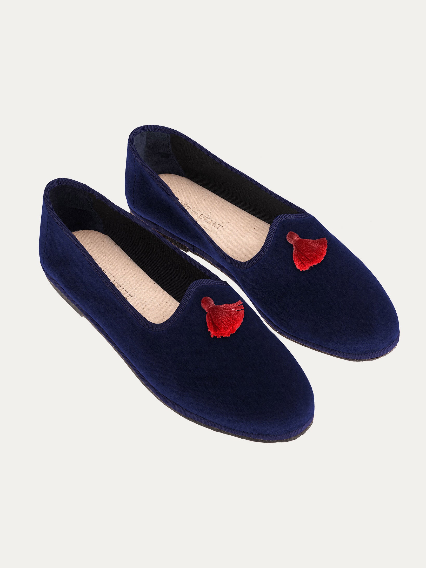 Elegant and comfortable, these cotton velvet slippers are handcrafted with care.