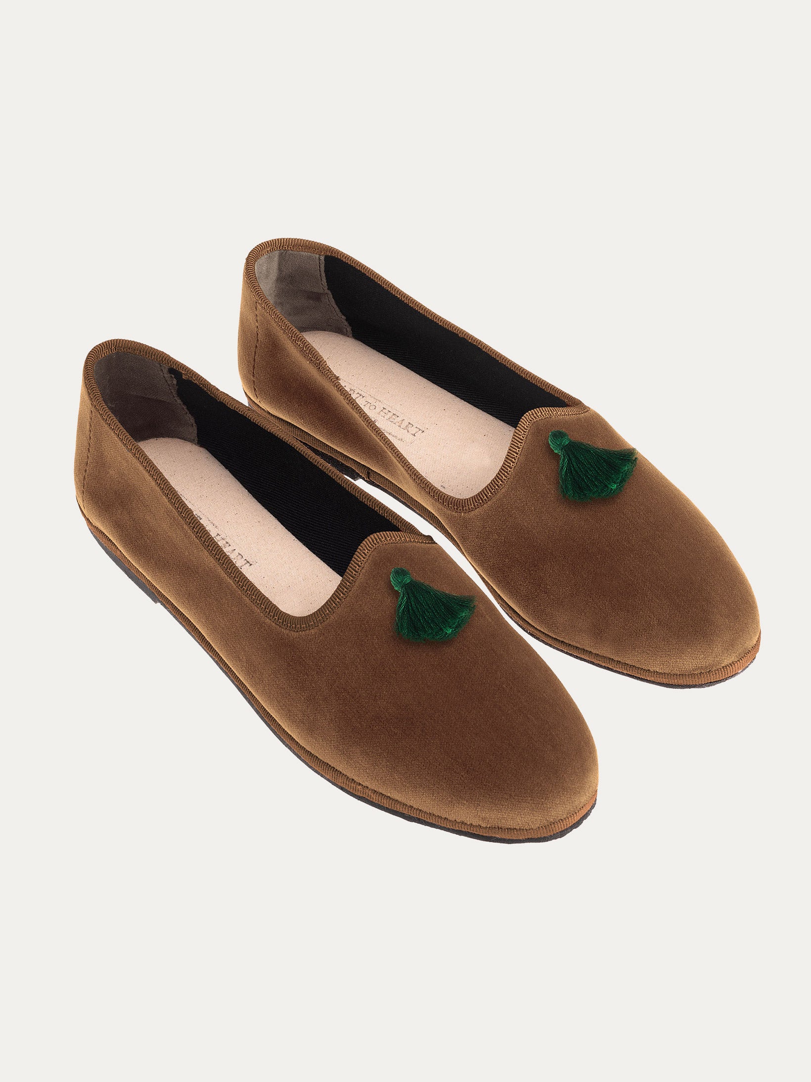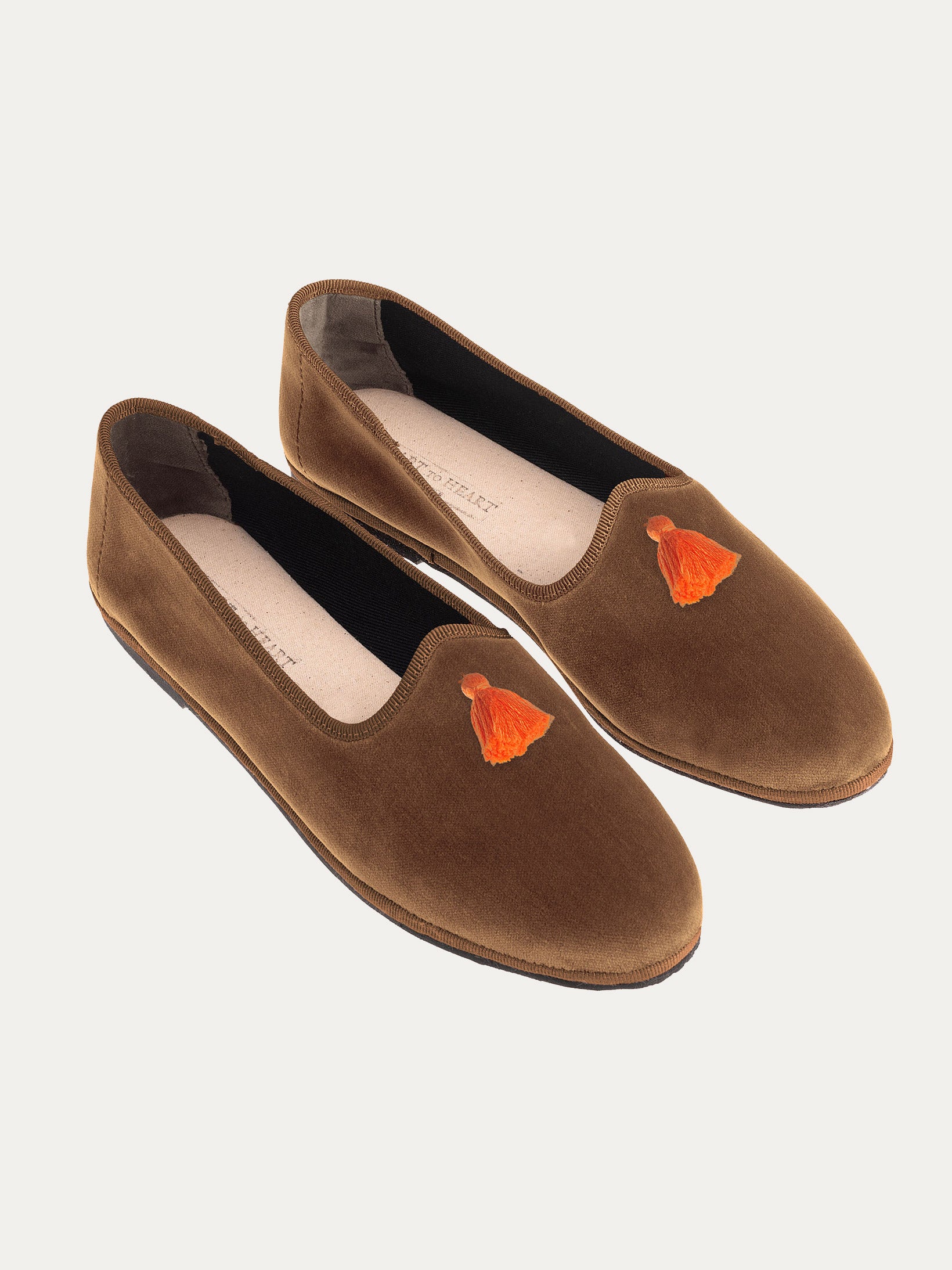 Elegant and comfortable, these cotton velvet slippers are handcrafted with care.