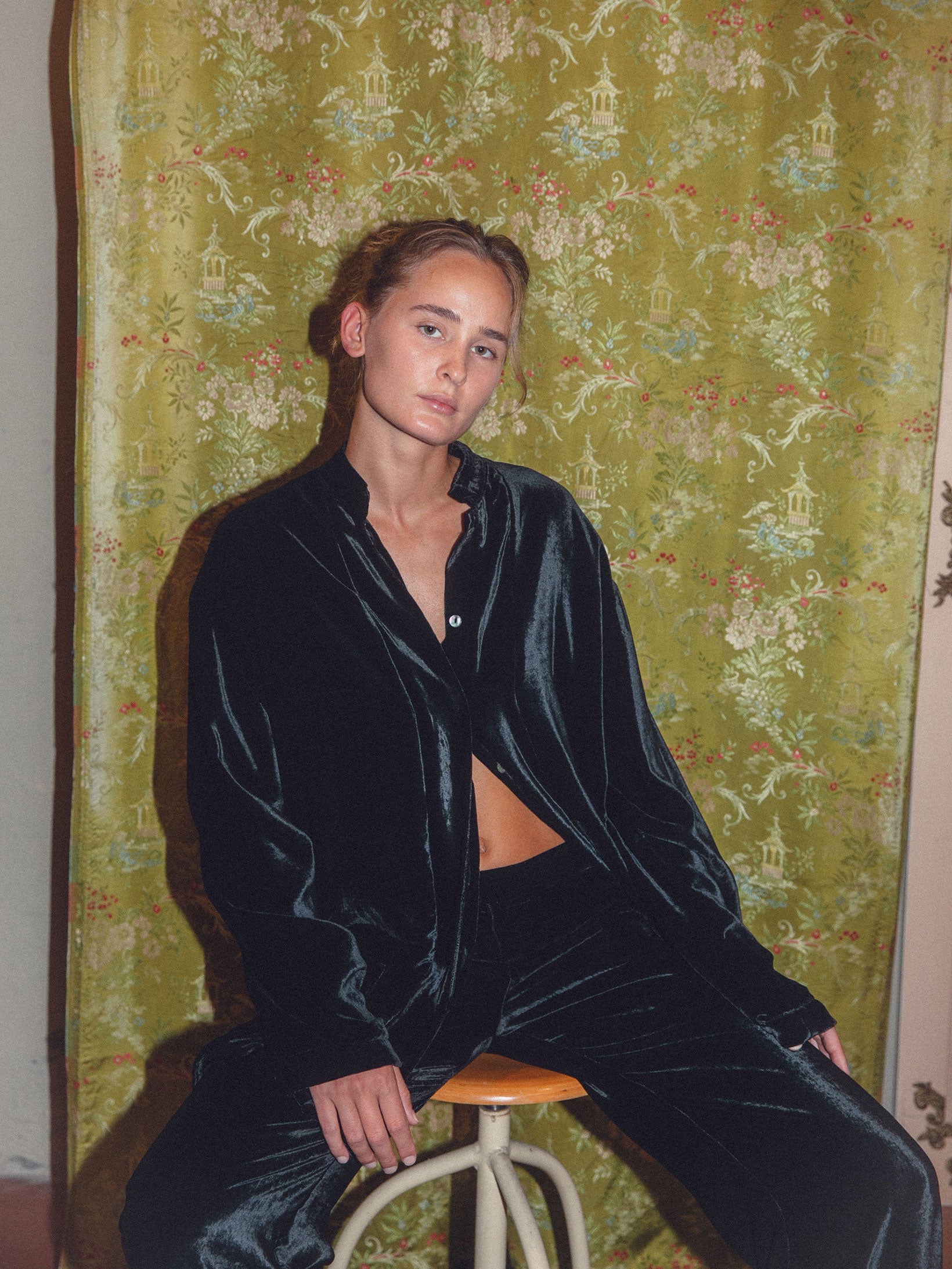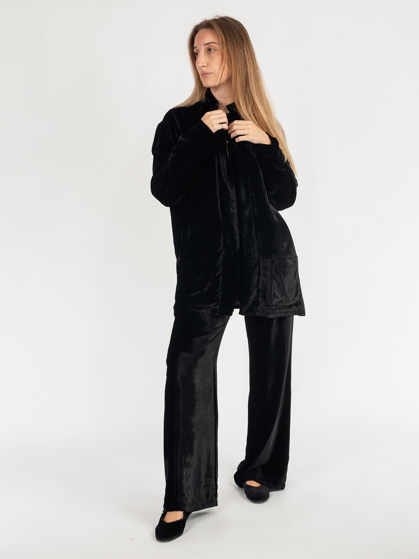 Our velvet jacket is finely lined, making it an exceptionally elegant outerwear piece.