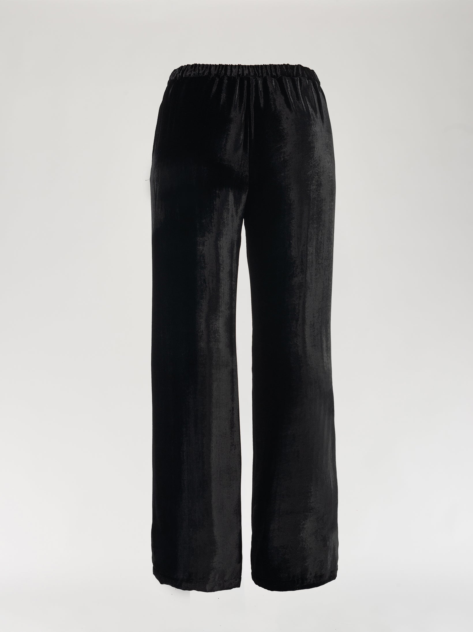 Tailored from a soft silk-viscose blend, these trousers feature a straight-leg silhouette and a mid-rise waist, with discreet side pockets for a clean and refined look. The comfortable fit is enhanced by an elasticated back waistband and a concealed side zip, offering ease and practicality without compromising on style.
